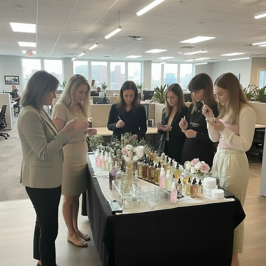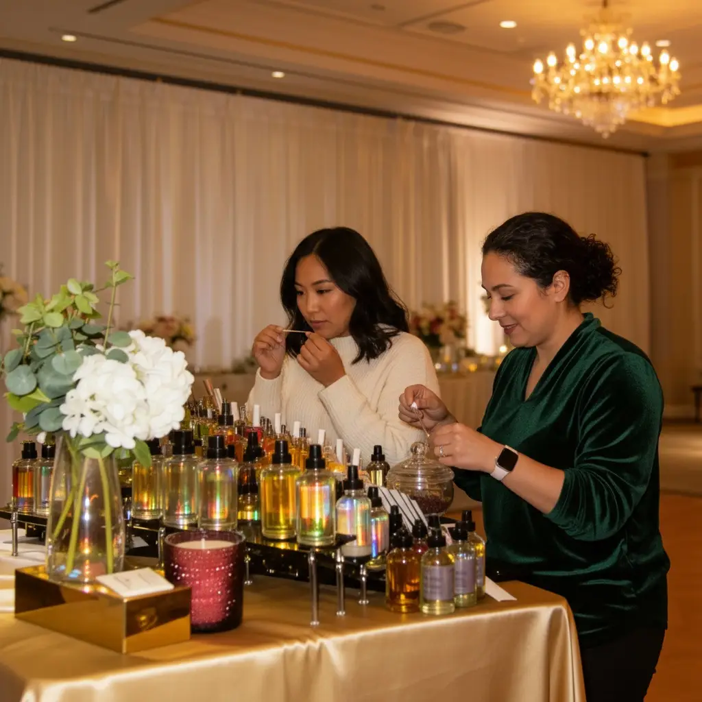 A luxury scent‑blending experience where guests create their own custom perfume or cologne. Perfect for employee appreciation ideas, corporate gifting, and interactive corporate experiences.