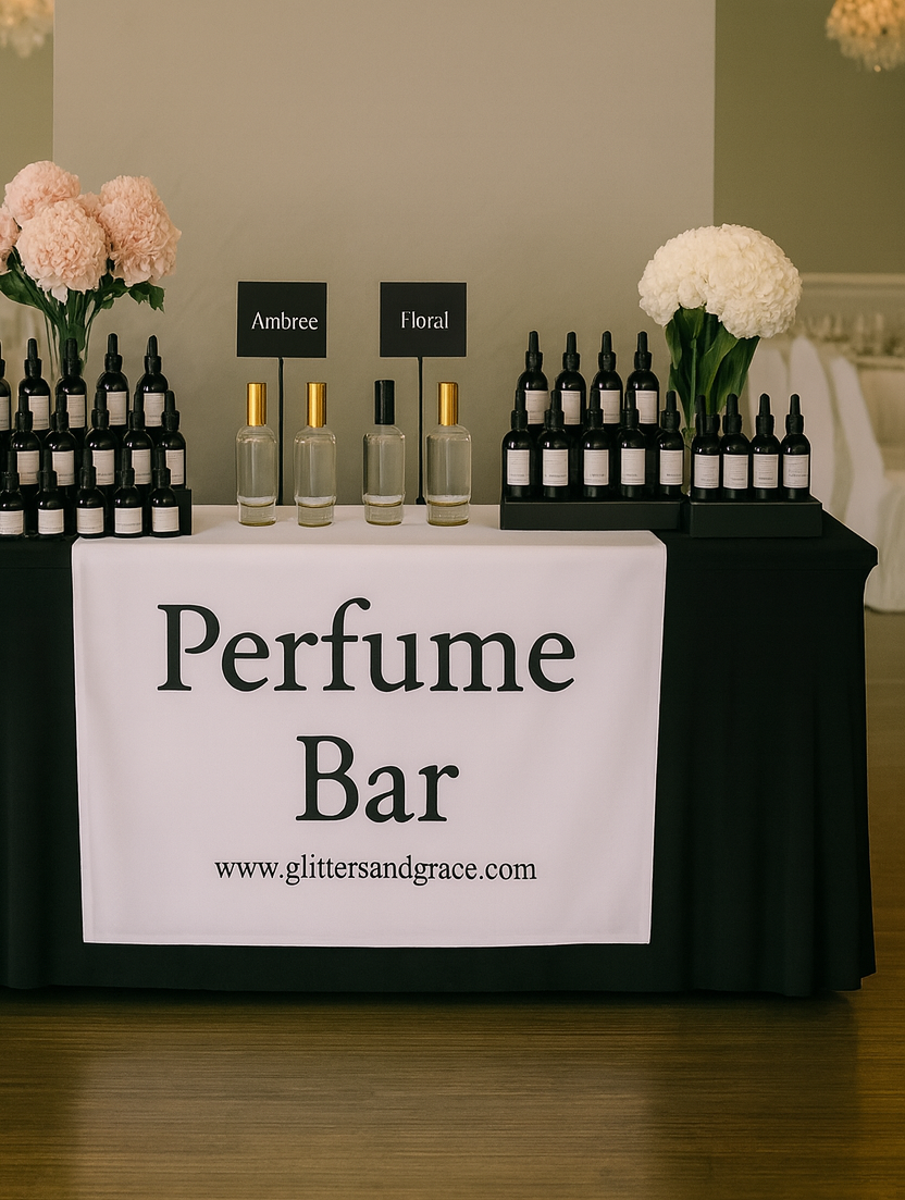 Welcome to Glitters and Grace—the Mobile Perfume Bar in Frankfort that’s redefining luxury event experiences. Whether you’re hosting a bridal shower, a corporate conference, or celebrating a birthday, our enchanting fragrance bar brings mood-based, mix-and-match scent discovery straight to your venue. From curated accords to glam party elegance, we deliver aromatic adventure with polish, personalization, and unforgettable flair.