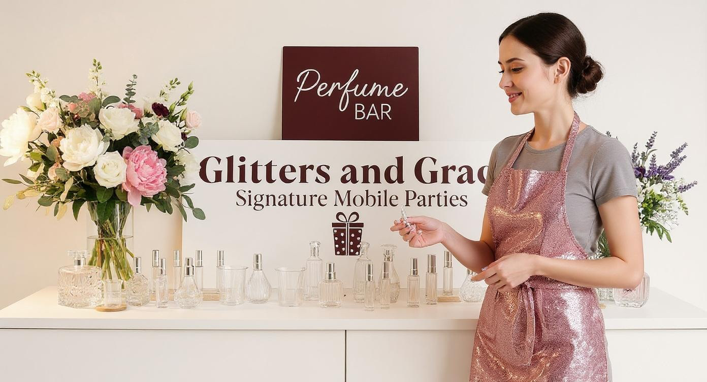 Our signature mobile bars will be the highlight of your event. We design customized set ups for small parties of 10 or less up to large events to over 500 guests. Create custom fragrances in Country Club Hills with our mobile perfume bar and create custom perfume blends with Glitters and Grace Signature Mobile Parties.Â