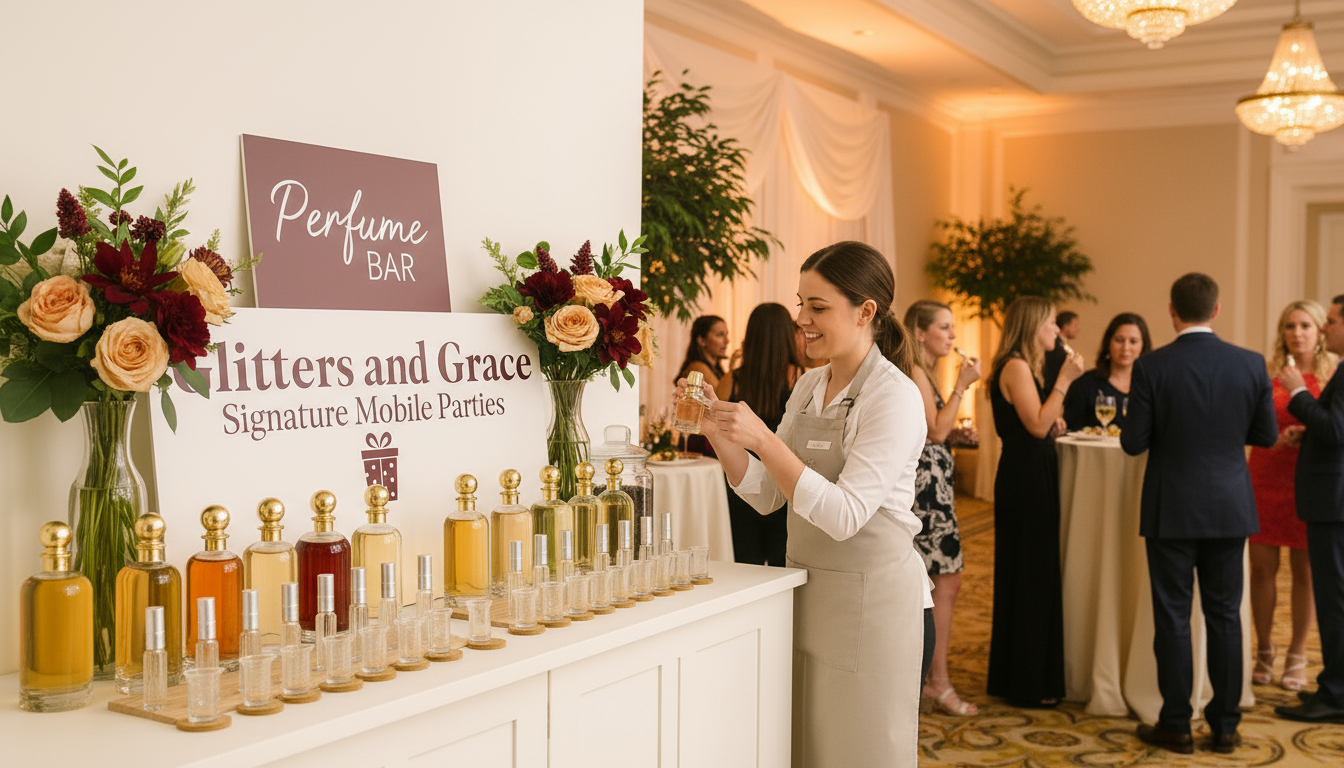 Welcome to Glitters and Grace—the Mobile Perfume Bar in Country Club Hills that’s redefining luxury event experiences. Whether you’re hosting a bridal shower, a corporate conference, or celebrating a birthday, our enchanting fragrance bar brings mood-based, mix-and-match scent discovery straight to your venue. From curated accords to glam party elegance, we deliver aromatic adventure with polish, personalization, and unforgettable flair.